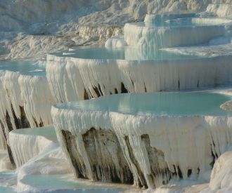 Desayuno. Salida hacia Pamukkale y visita a la antigua ciudad de Hierápolis, las aguas calcáreas han creado el castillo de algodón. Pamukkale ha sido declarada por la UNESCO como uno de los Patrimonios Culturales Eminentes del Mundo. Tiempo libre para aprovechar las piscinas naturales. Cena incluida