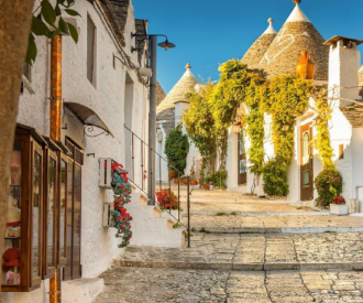 Puglia, una joya en el sureste de Italia, es una combinación de arte, historia y naturaleza. Esta tierra bañada por el sol se extiende entre los mares Jónico y Adriático, donde altos acantilados dan paso a playas doradas y aguas cristalinas. En el interior, descubre antiguos olivares, viñedos y bosques, además de barrancos mediterráneos ricos en biodiversidad. Los sitios arqueológicos revelan una historia profunda, con tesoros como los Sitios Patrimonio de la Humanidad de la UNESCO: Castel del Monte, los icónicos trulli y el Santuario de San Miguel Arcángel. En la mesa de Puglia, degustarás los sabores auténticos de la región: aceite de oliva excepcional, vinos y platos elaborados con ingredientes frescos y locales. La calidad de vida es alta, con un clima cálido y festivales animados durante todo el año.